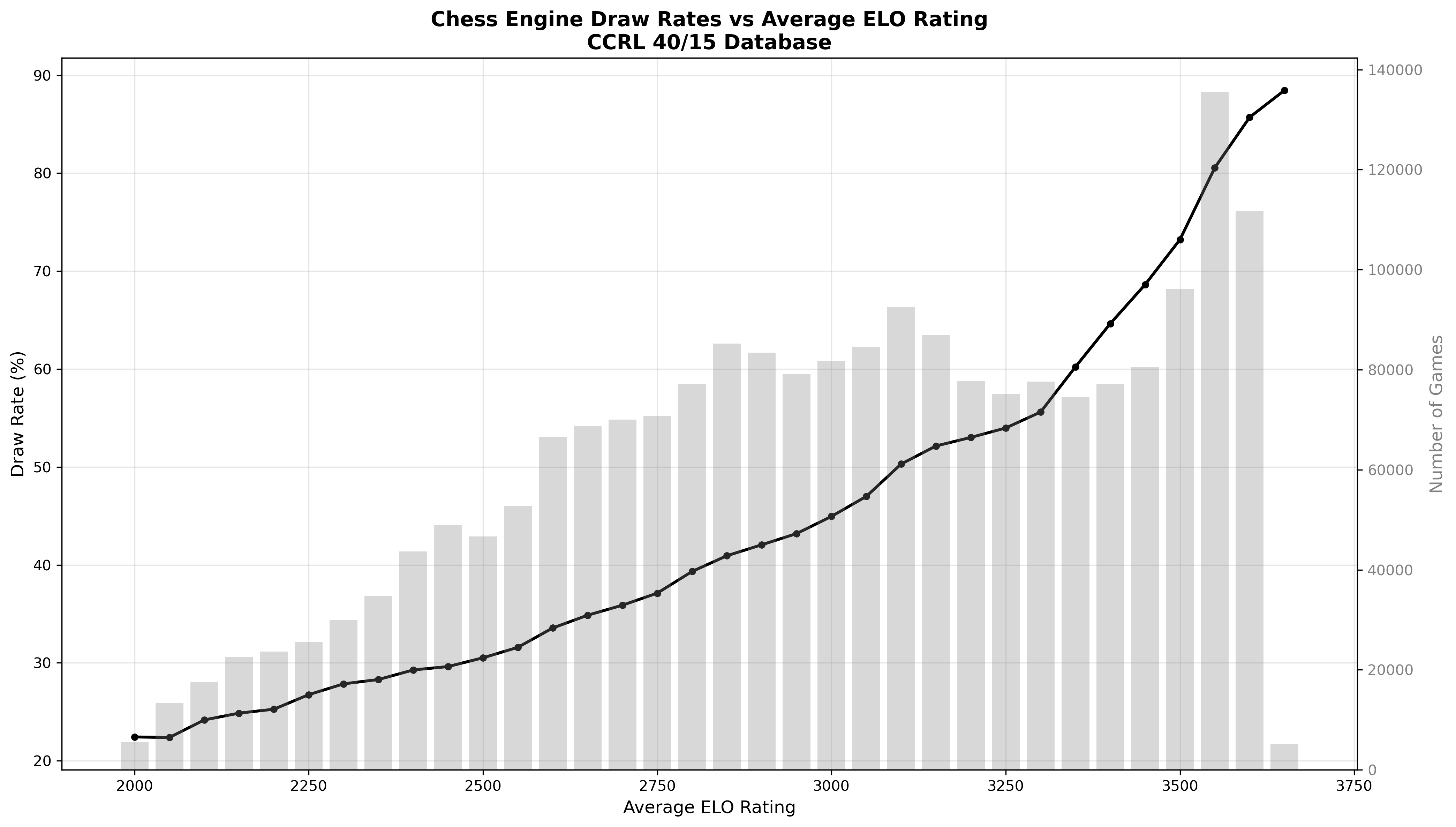 - From 2000 to approximately 3000 Elo the draw rate roughly doubles.
